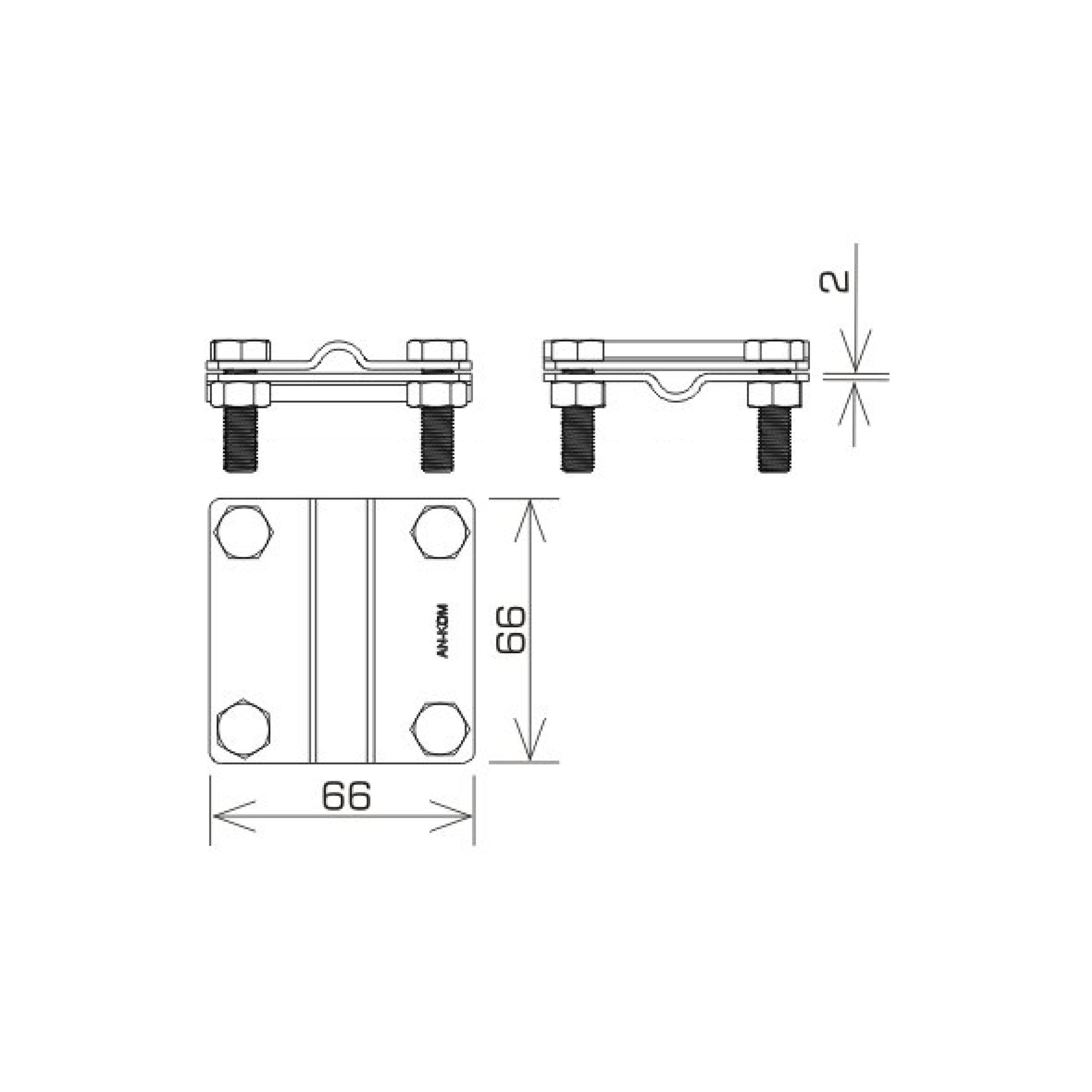 Connection of round conductors in a cross, parallel and T-shaped configuration.