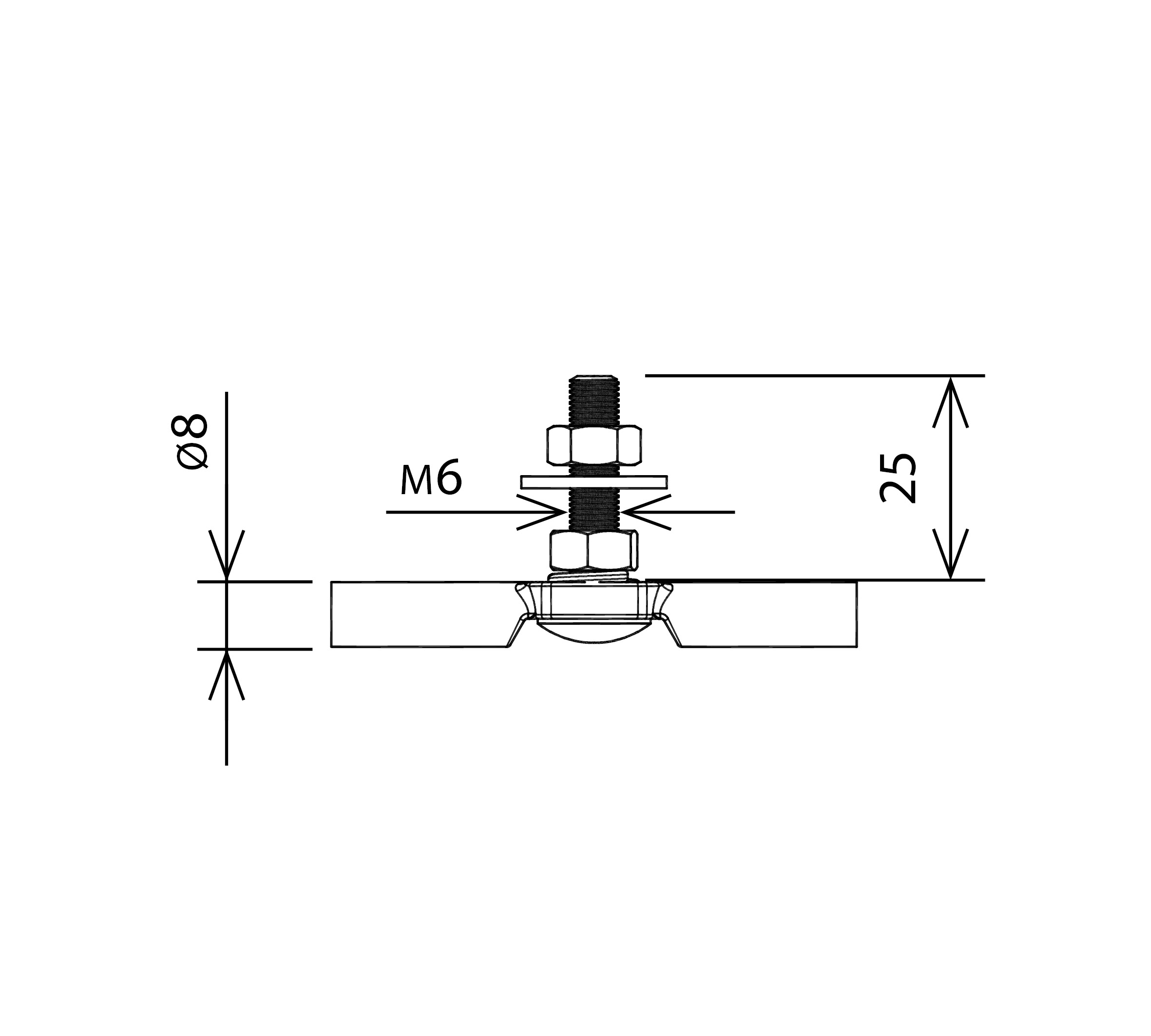 Adapter for mounting cable beds. In combination with a concrete holder, e.g. B931516, B931504 or B931588, it creates a ready product for mounting conductor beds on flat roofs of industrial facilities.
