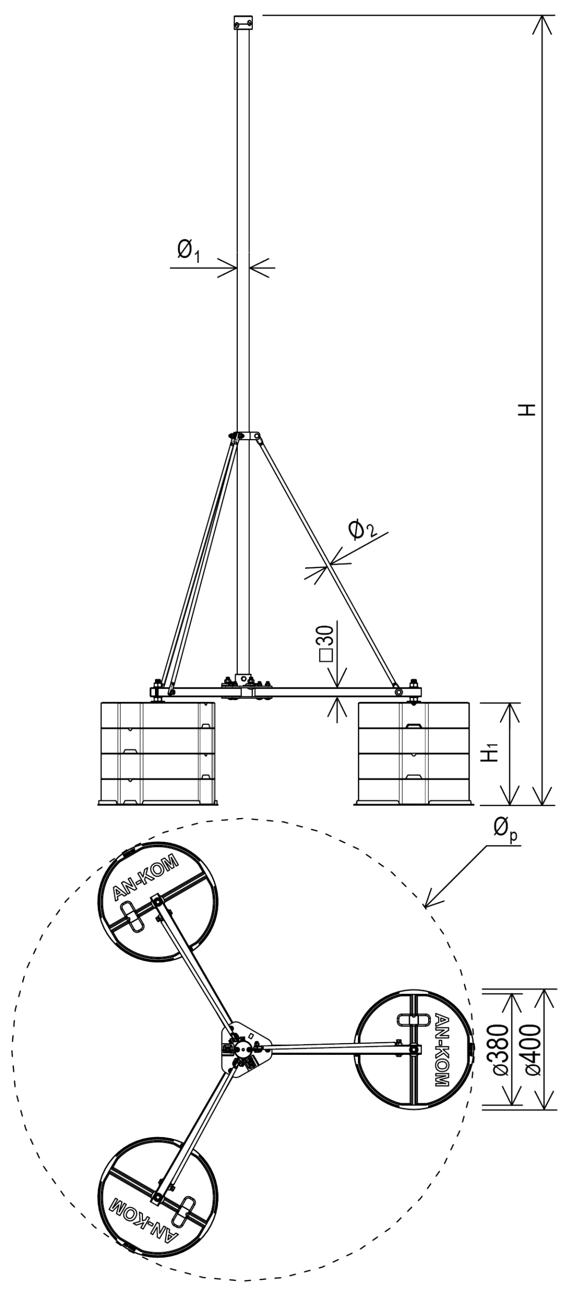 Maszt klatkowy aluminiowy wolnostojący na trójnogu. Służy do budowy zwodów poziomych podwyższonych (klatek ochronnych).