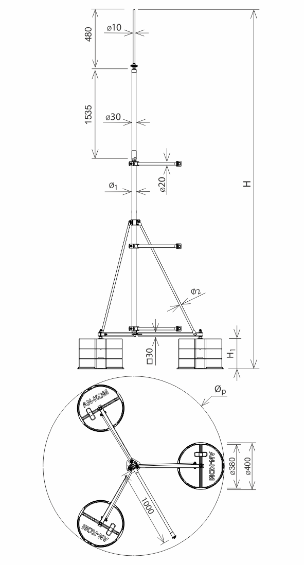 Maszty wolnostojące aluminiowe ze zwodem odsuniętym na trójnogu wraz z obciążnikami. Służą do odprowadzenia prądu pioruna przy zachowaniu odstępu iskrobezpiecznego, który zapewniają drążki izolacyjne poziome.