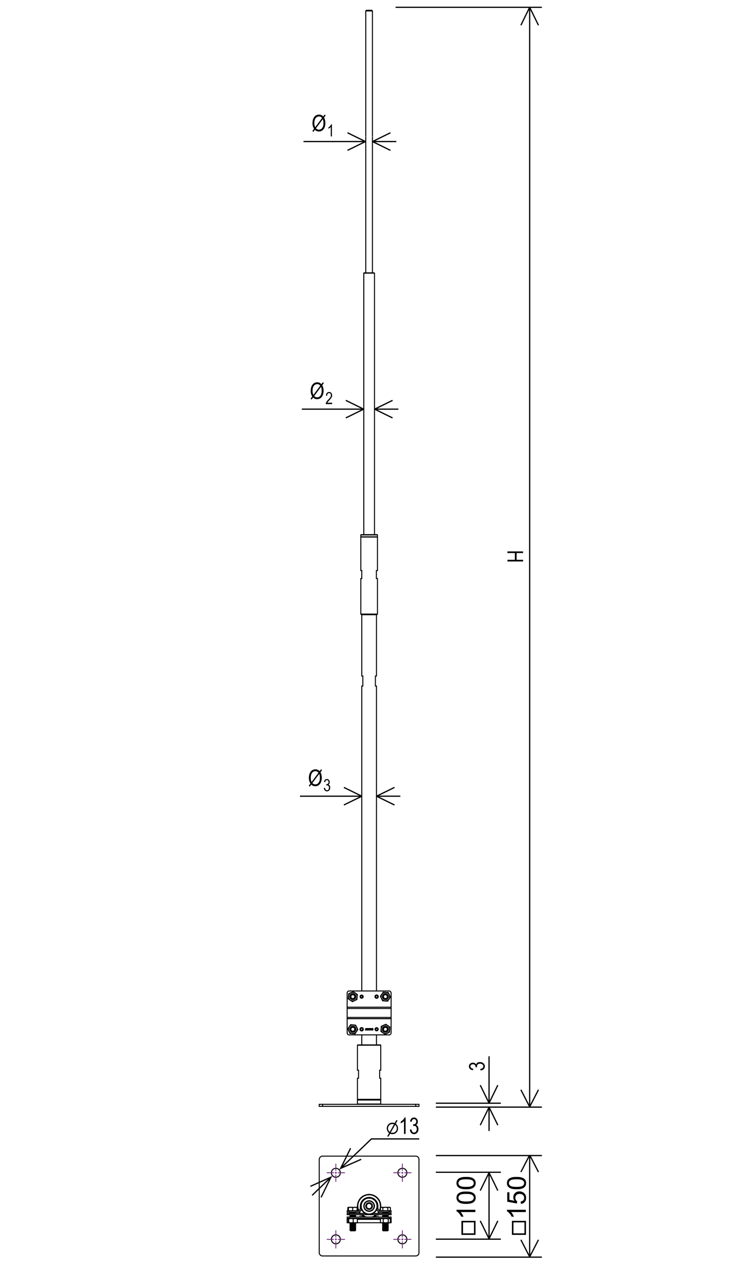 MONTAŻ: poprzez przykręcenie podstawy masztu do podkonstrukcji.