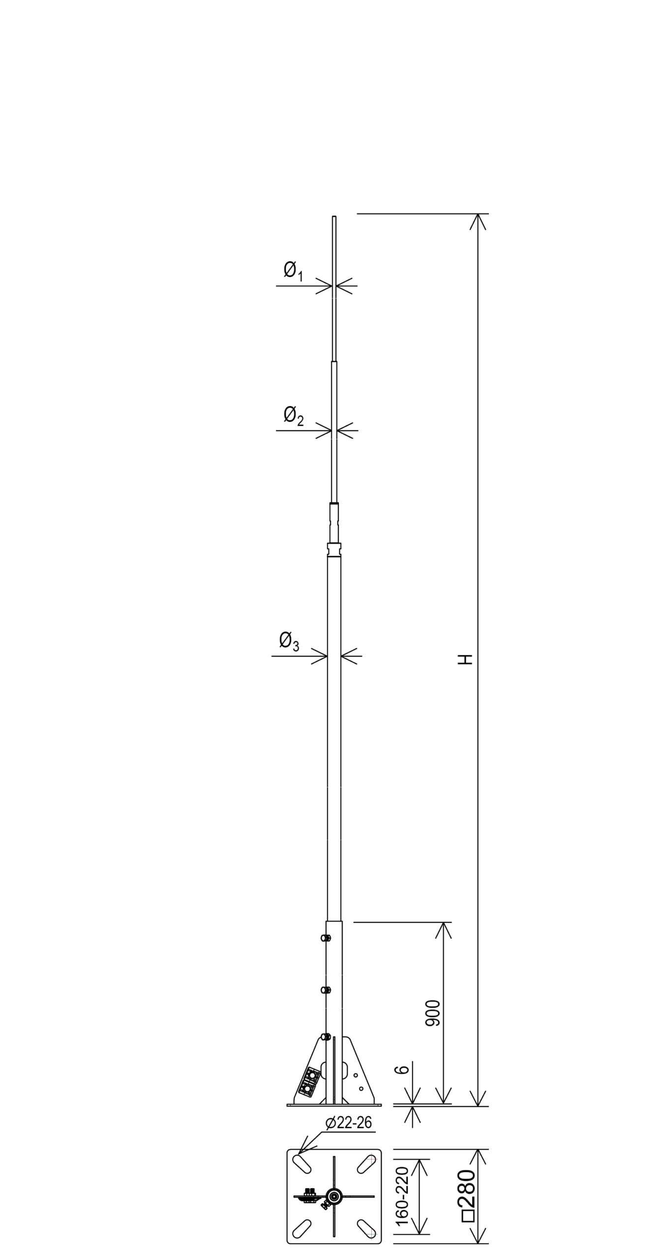 MONTAŻ: poprzez przykręcenie podstawy masztu do podkonstrukcji.