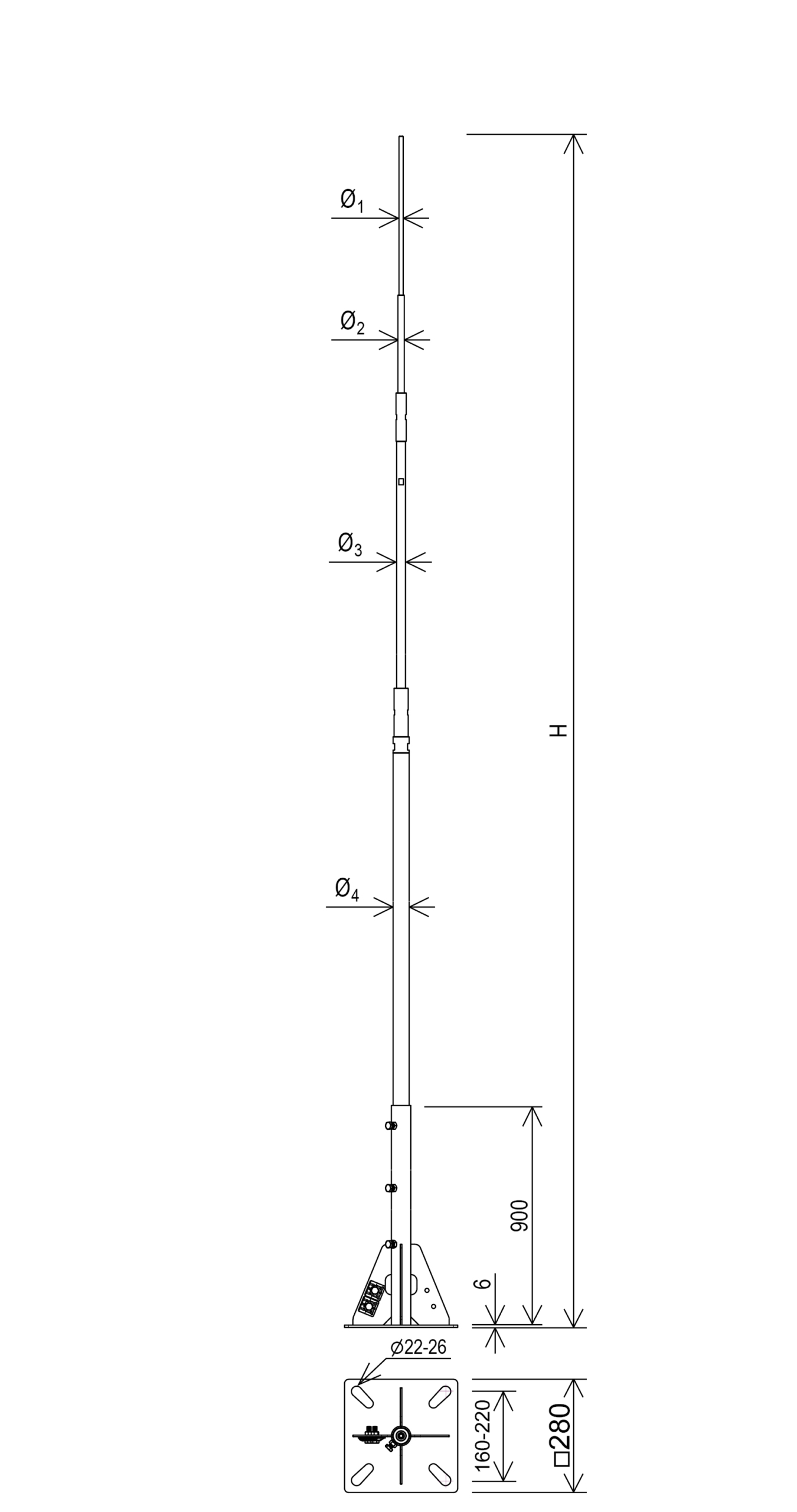 MONTAŻ: poprzez przykręcenie podstawy masztu do podkonstrukcji.
