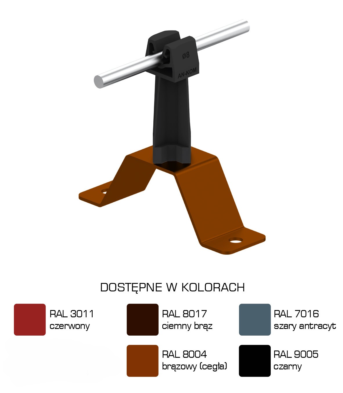 Uchwyt uniwersalny do prowadzenia przewodu odgromowego na dachu pokrytym blachą, papą, gontem.